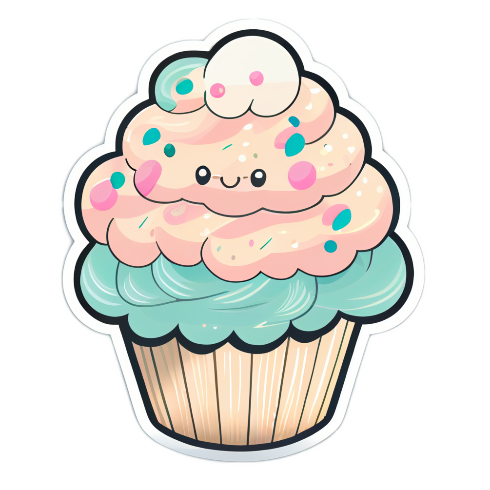 Cartoon-style Kawaii Vector Cupcake Sticker in Pastel Colors